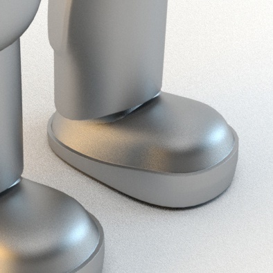 There may be some noticeable glossy specular noise on the surface of the robot due to poor sampling of the indirect specular component of the robot's shader. Increasing the global Specular value to 3 helps resolve this noise and creates a cleaner looking render.