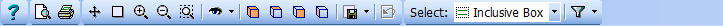 Clicking on this button and moving to the graphic window causes a selection box cursor to be displayed. The mouse should be moved so that the 'cross' at the top-left of the selection box cursor is at one corner of the rectangle of interest. The left mouse button should then be clicked. Rubber-band cross-hairs then define the selection box. The mouse should be moved to define the diagonally opposite corner of the rectangle of interest. Clicking the left mouse button again causes the selection box to close and the view to zoom in to include the extents of the viewing area that was defined by the selection box.