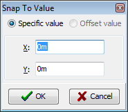Snap To ValueClick on this button to display the following form which enables snapping to a specific coordinate. Alternatively an offset (from the last click point) can be entered.