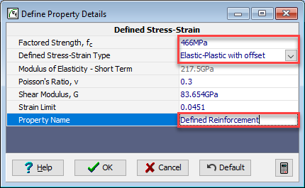 Repeat this for the steel section changing the property to be the “Defined Structural Steel” property. Close this form with the ✓ OK button.