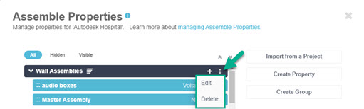 Select Delete to permanently remove the property from Assemble.