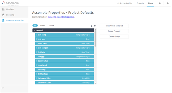 Select Hide to keep the property from being seen by others in the Assemble Properties list.