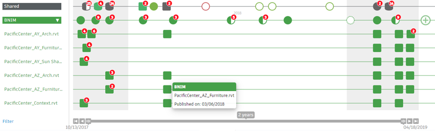 Additionally, for teams that collaborate internally or those that collaborate externally using Cloud Workshared Revit models, the timeline displays published models.