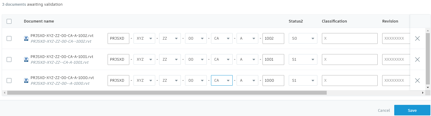 icon to remove individual documents from the naming validator. These documents will still remain in the holding area.