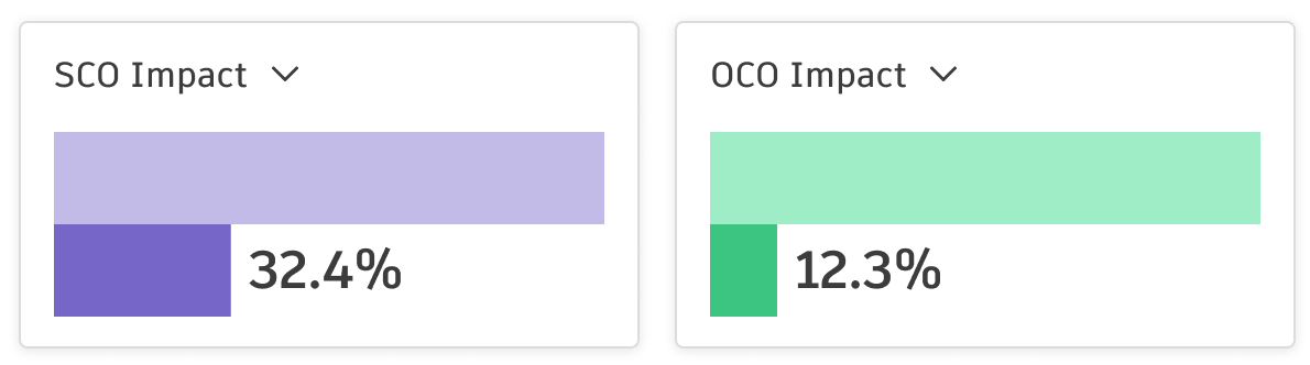 Percentage impacts are calculated based on the selected metrics, and visualized using bars to represent these percentages.