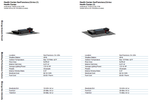 Modify the building model and energy settings as needed. Then repeat steps 5-7 to run a simulation on the modified model. For a side-by-side comparison of simulation results, select multiple analyses and click Compare on the toolbar. |