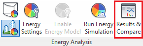 In the Results and Compare dialog, view the analysis results. Tip: Use the Settings tab to select the charts to include in the results and to configure the display of energy analysis data on the Results tab. |