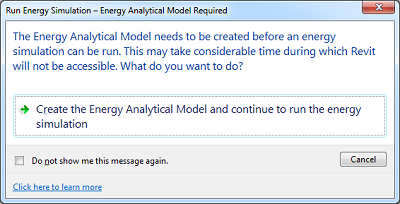 You are informed when the energy analytical model has been generated. Click OK. To learn about energy model validation and limitations, see Energy Analysis using Building Elements Model Validation. You can review the geometry in Autodesk Design Review. |