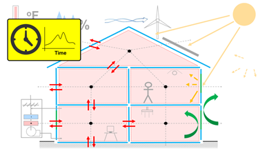 Now that we know both the building’s properties and the loads it will be subjected to over time, we can simulate heat transfer over time (usually an entire year, in hourly increments).This includes: