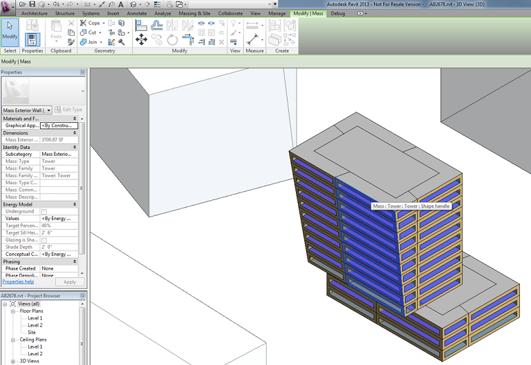 Surfaces selected in a conceptual mass model of Autodesk Revit.