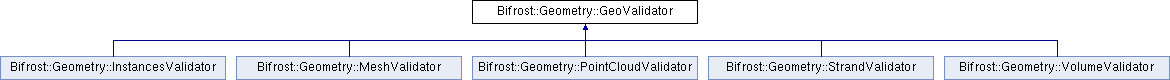 Reimplemented in Bifrost::Geometry::PointCloudValidator, Bifrost::Geometry::InstancesValidator, Bifrost::Geometry::StrandValidator, Bifrost::Geometry::MeshValidator, and Bifrost::Geometry::VolumeValidator.