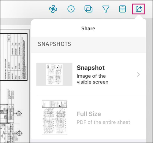 Members can share a snapshot of a sheet, or a full-size PDF of the entire sheet. This can be useful if you want to share a sheet comparison or a sheet with markups with other members.