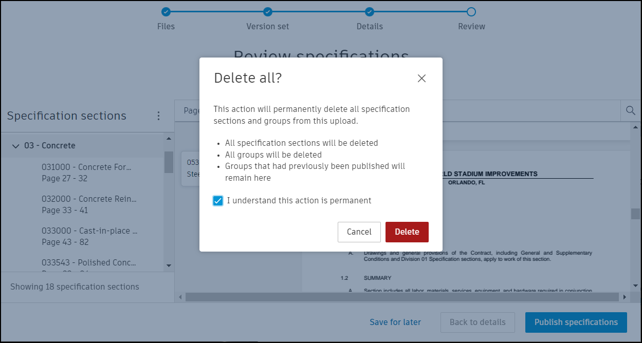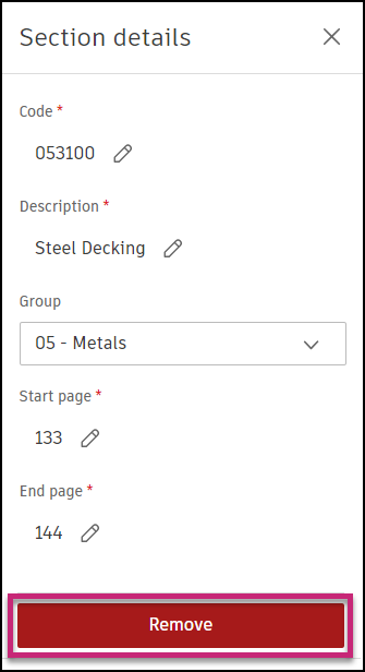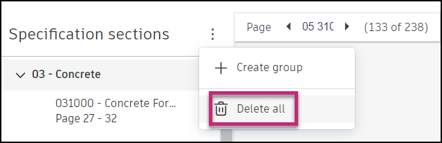 See Delete All Specification Sections to learn how to permanently delete all sections from an upload.
