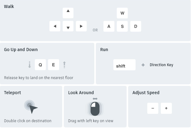 Review the first person navigation controls and click in the whitespace to move to the project model.