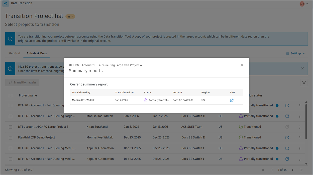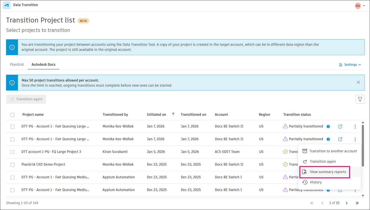 - Total items transitioned to Autodesk Docs
