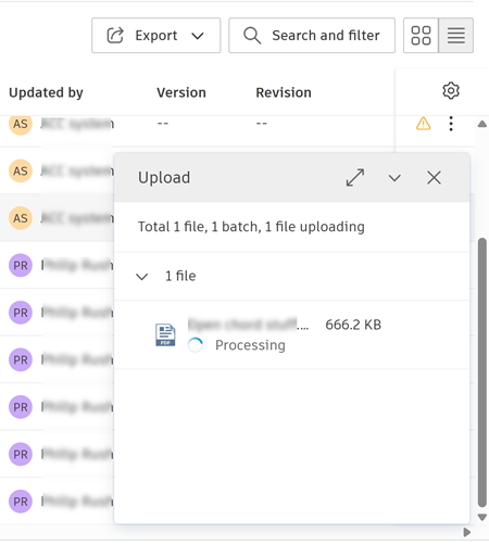 Files appear in their folders and can be managed using file actions. However, files can't be viewed until they pass the Process for viewing stage. |