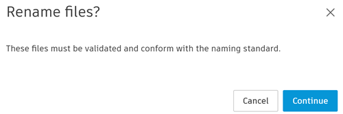 If you want to rename a file in a folder with a naming standard applied, you can rename one or more files at once. The file names will need checking in the validator where you can edit the relevant attributes so they comply with the naming standard. See Validate Files Names and Required Attribute Values to learn more.