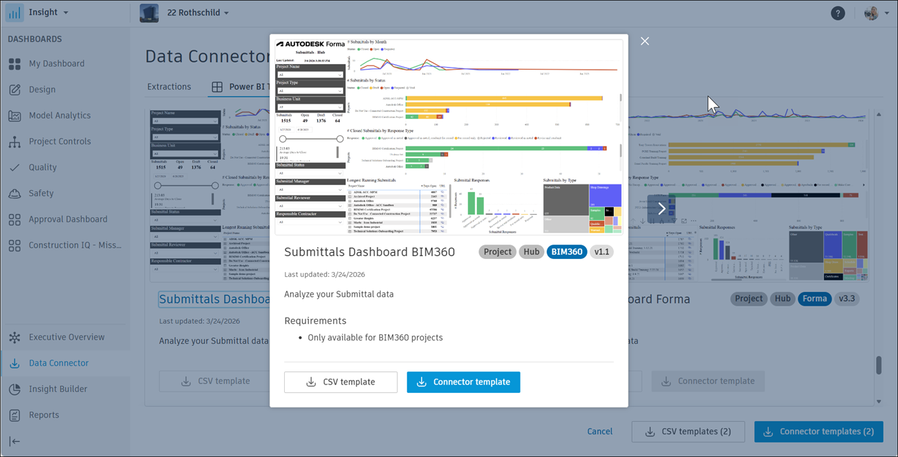 Access to Admin and Submittals (BIM 360) data is required