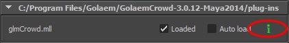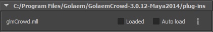 Once the plug-in is properly installed, you can load the Golaem Crowd plug-in in Maya. Open the Plug-in Manager using menu Window > Settings/Preferences > Plug-in Manager and look for the following entry in plugins list: