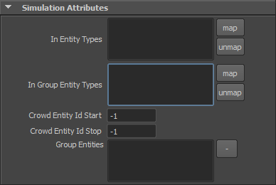 In Group Entity Types | Group Entity Types registered and available in the scene. Group Entity Types are automatically registered in the Crowd Manager, but you can remove/add them manually |
