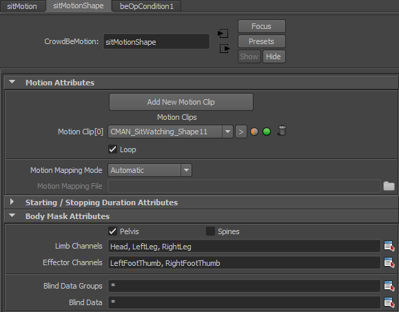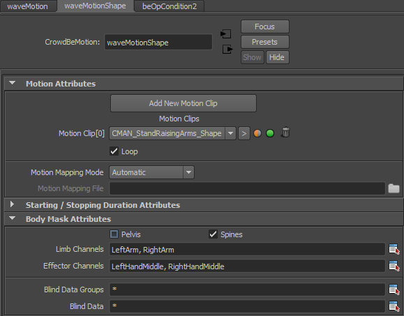 This is very useful to create new motions from already existing ones, or completing motion capture motions for which some parts of the body (fingers...) we not captured.