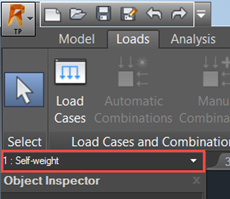 Load Case drop-down list above the Object Inspector