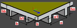 Grillage: h - rib height a - rib spacing a1 - rib width b - rib spacing b1 - rib width |