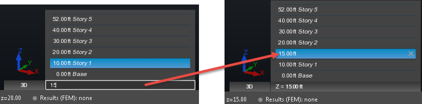 To display the level list, position the mouse cursor on the Z = box at the bottom of the drawing area, showing the current level.