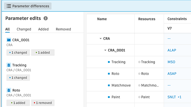 1.12 | In Flow Generative Scheduling, compare two schedule versions or two scenarios side by side to see differences in tasks, resources, and constraints.