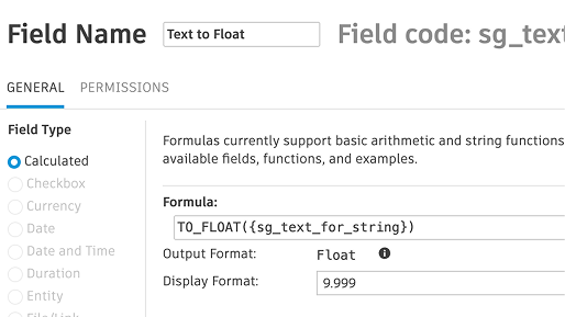 8.84 | Convert numbers in text fields to floats with Calculated Fields.