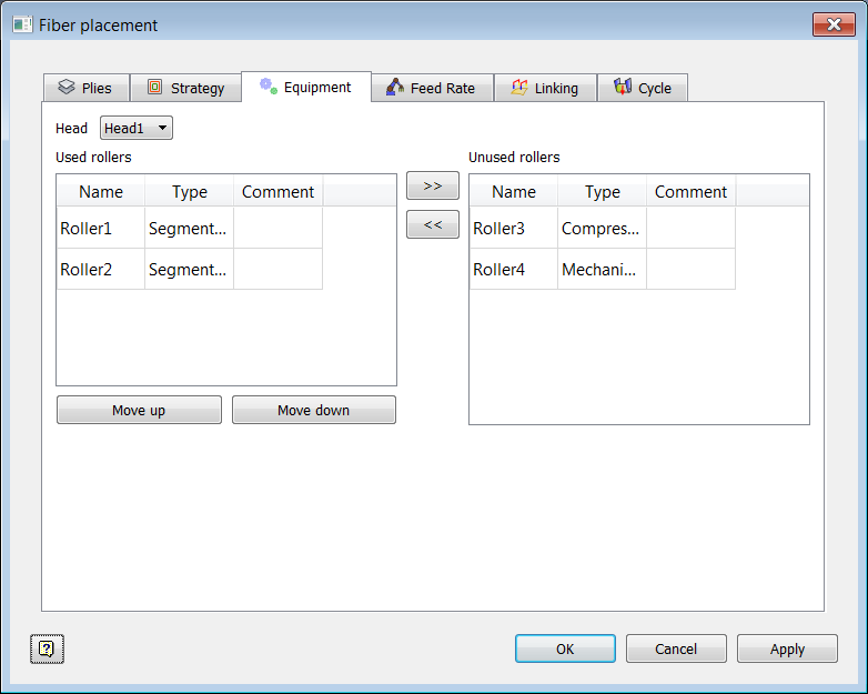 - Click Move Up or Move Down to adjust the rollers’ positions on the head.
