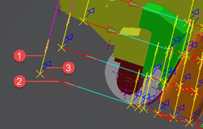 A head profile is a contact point (line) of the roller on the surface at each NC point. You can choose to display them at each tow cut (Outside Only).