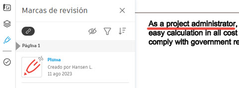 Puede añadir marcas de revisión a un documento PDF. Puede resultar útil, por ejemplo, durante el proceso de revisión del flujo de trabajo de aprobación.