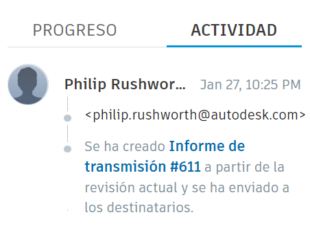 Las actividades de informe de transmisión de cada revisión se mostrarán en la ficha ACTIVIDAD.