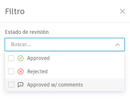 Una vez que haya seleccionado uno o varios estados de revisión, haga clic en Aplicar y, a continuación, en Transmitir (x) filtrado.