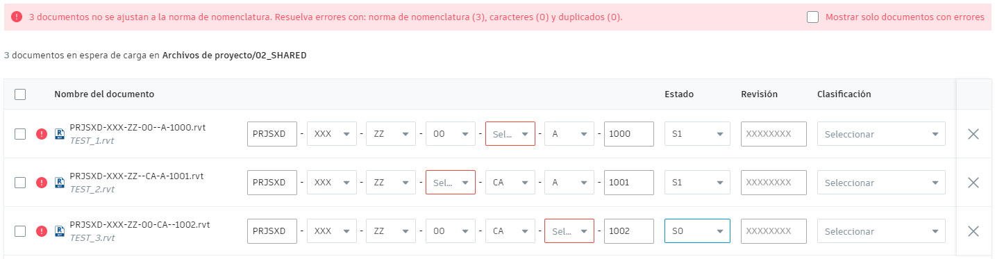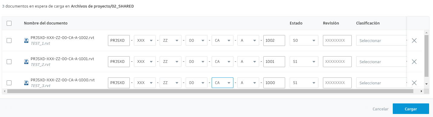 El área de retención almacena los documentos que contienen nombres de documento no adecuados. Resulta útil cuando un miembro del proyecto está cargando documentos que no cumplen con la norma de nomenclatura. Si el área de retención está activada, el proceso de carga puede continuar y los nombres de documento se pueden actualizar posteriormente para resolver cualquier error de nomenclatura.