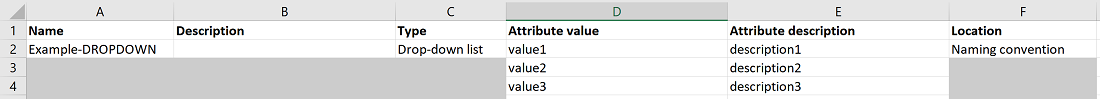 Atributos desplegables: también puede añadir valores de atributo y una descripción para cada valor de atributo.