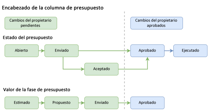 Nota: los estados del presupuesto Borrador, Rechazado y Vacío no aparecen en la tabla.