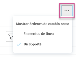 Para mostrar las órdenes de cambio como columnas, haga clic en el menú de tres puntos y seleccione la vista.