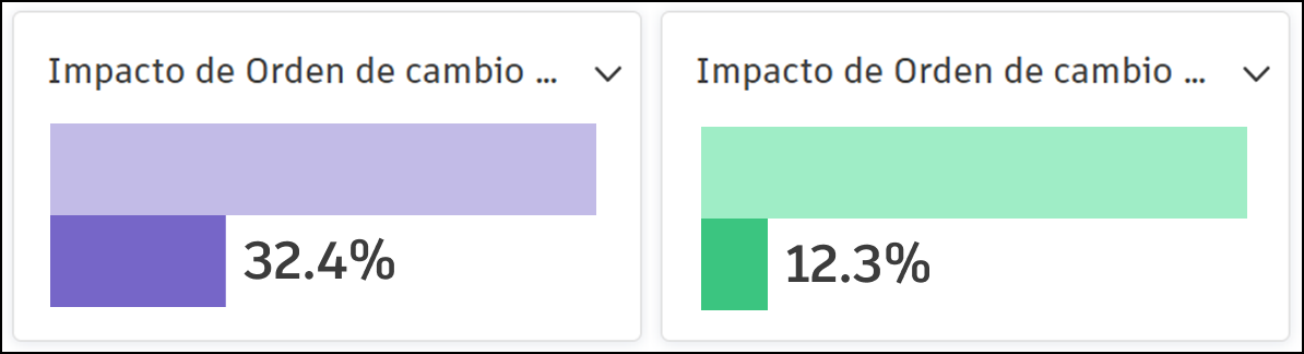 Los impactos porcentuales se calculan en función de las métricas seleccionadas y se visualizan mediante barras para representar estos porcentajes.