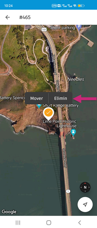 i. Mover: mantenga pulsado y arrastre el mapa de incidencias a una nueva ubicación. Pulse para colocar el indicador.