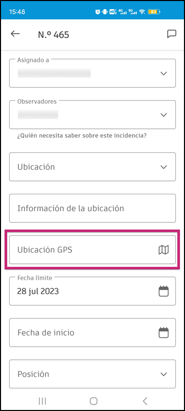 Puede añadir una ubicación GPS al crear o editar una incidencia.