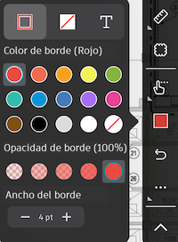 Editar el borde y el relleno de la marca de revisión. Seleccione uno de los colores disponibles o deslice las barras de opacidad y grosor según corresponda.