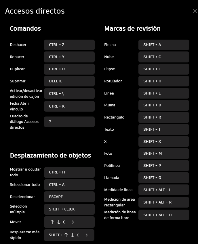 Puede ver una guía de todos los accesos directos disponibles para las marcas de revisión.