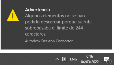 - Al intentar descargar, o abrir carpetas o archivos donde alguna de las rutas de acceso de alguno de los archivos sea demasiado larga, se completará la operación para los archivos o las carpetas que no superen el límite de la ruta y aparecerá una advertencia en la que se indique que algunos de los archivos superan dicho límite.