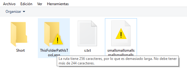 - Si intenta acceder a una carpeta con una ruta demasiado larga, se mostrará un mensaje de error.
