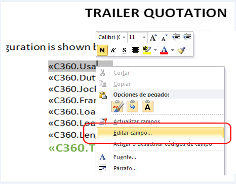 El campo MergeField C360.CurrentDate es obligatorio en lugar de insertar un campo fecha de Word.