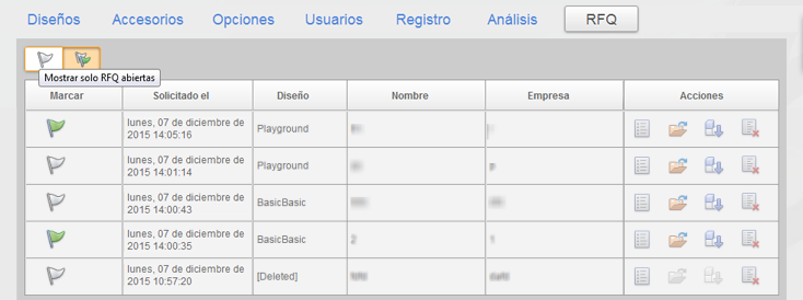 En la vista Administrador, la ficha RFQ muestra una lista de las RFQ de sus clientes.