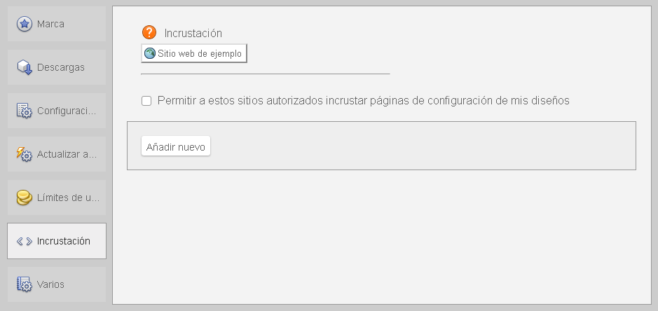 Las opciones de las subfichas controlan aspectos de toda la cuenta de Configurator 360. Esta configuración afecta a todos los diseños cargados.