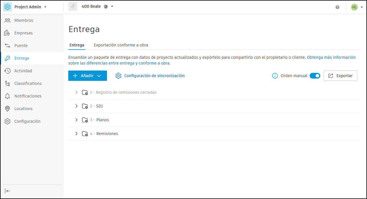 La entrega es una herramienta de ensamblaje de paquetes dentro de Project Admin. Es un lugar donde ensamblar, recopilar y organizar la documentación de entrega que, en última instancia, se exporta y se comparte con el propietario o cliente.
